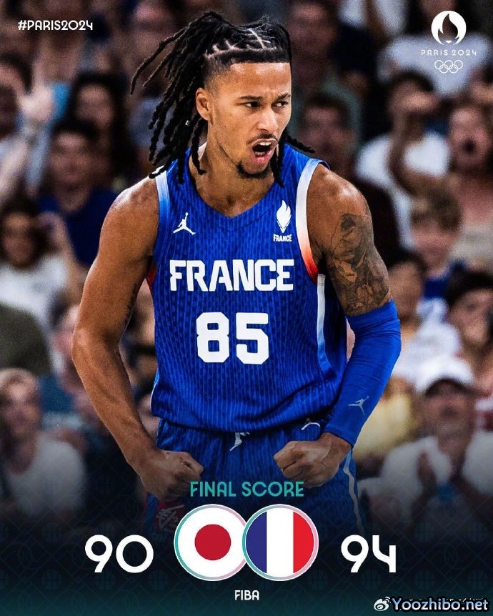 优直播7月31日讯 奥运男篮小组赛B组,法国对阵日本。一开场,双方很快陷入缠斗,比分始终紧咬,法国不断冲击篮筐拿分,日本连中三分还以颜色,亚布塞莱连中三分,日本内外开花一波8-0一度反超比分,法国及时回暖完成9-2的小高潮,半场战罢法国49-44领先5分。下半场,日本率先发力打出8-2反超比分,此后双方展开拉锯战,比分交替领先,法国一波7-0占据主动,末节八村塁累计违体犯规被驱逐,河村勇辉3+1连得6分带队反超,双方争夺陷入白热化,戈贝尔误伤巴图姆导致后者嘴里出血,关键时刻富尼耶三分扳平比分,河村永辉4罚全中后斯特拉泽尔3+1再度抹平分差,河村永辉超远三分绝杀不中,双方进入加时。加时赛,文班亚马统治攻防两端,个人连得8分,日本连中三分但依旧无力回天。最终,法国加时94-90力克日本。