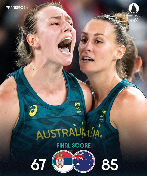 优直播8月7日讯 巴黎奥运会女篮1/4决赛,塞尔维亚女篮对阵澳大利亚女篮,小组赛两支球队都是2胜1负的战绩排在各自小组第2名。比赛开始,双方上来都迅速进入比赛状态,史密斯撑起澳大利亚进攻,但塞尔维亚女篮能给出回应咬住比分,乔治里突外投连砍7分,澳大利亚首节领先7分,次节墨尔本里突外投接连砍分,澳大利亚顺势拉开双位数领先,随后墨尔本继续上分带领澳大利亚8-0结束半场,领先到16分。下半场,塞尔维亚7-2小高潮止血,但史密斯联手惠特科姆带领澳大利亚回应一波17-0超强攻击波直接拉开近30分领先,末节双方命中率都有下降,塞尔维亚依靠三分追分,但澳大利亚牢牢掌握住20分左右领先优势,最终澳大利亚女篮85-67轻取塞尔维亚女篮,晋级四强,对手将是美国女篮与尼日利亚女篮之间的胜者!