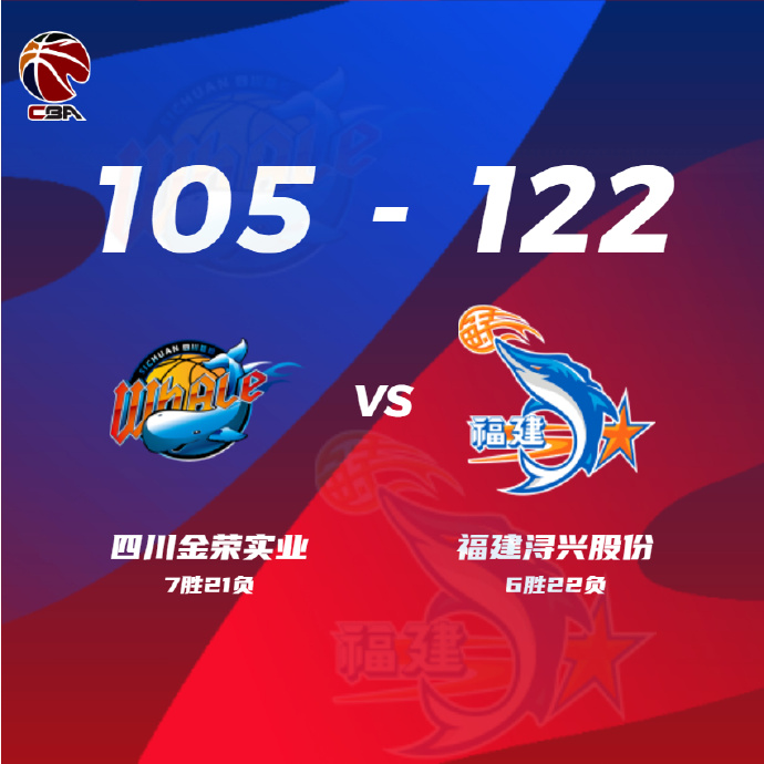 优直播1月18日讯 CBA常规赛第二阶段接近尾声,四川对阵福建,四川最近日子不太好过,由于哈达迪的伤缺,最近已经3连败,7胜20负排在积分榜第17位,而福建有所反弹,2连胜后5胜22负排在第19位。双方上来就展开对攻战,-田桂森手感火热,6分钟内弹无虚发砍下12分,帮助福建队建立主动权,而四川队进攻主要靠马兰的单打苦苦支撑,次节一上来四川就陷入得分荒,陈林坚找到手感单节砍下15分,福建抓住机会打出15-0攻击波一举拉开近20分的分差。下半场,韩硕找回状态连续取分,但陈林坚也是保持住手感,第三节双方打平,福建依然保持18分的领先优势,随后双方展开拉锯战,福建始终保持着15分左右领先,最终福建122-105力克四川,拿到3连胜的同时送对手4连败。