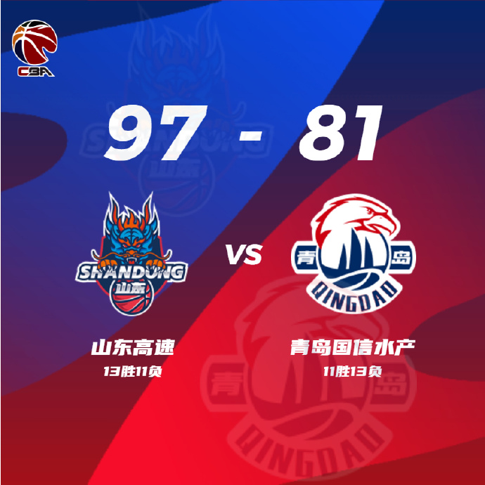 青岛(11-13):里斯27分13篮板3断2帽,王睿泽23分6篮板4助攻,赵嘉义12分3篮板,吕俊虎6分4篮板,亚当斯8分2篮板。