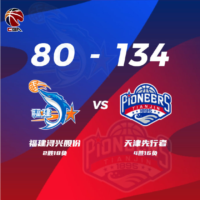 优直播12月31日讯 天津和福建今日迎来年前的最后一场对决,两支球队本赛季发挥都不太理想,这其中天津目前遭遇14连败,福建也遭遇到了7连败。两支球队近期战绩虽然都比较糟糕,但从首节对决来看天津更渴望取胜,以拿下10分的詹姆斯为首天津首节就拿到16分的大比分领先;次节福建没有任何好转迹象,他们半场三分球7投0中颗粒无收,而天津这边半场命中10记三分,以双外詹姆斯和韦瑟斯庞联手拿下30分的带下,天津半场就建立起28分的大比分领先。休息归来场面依旧,福建完全落入被动,而天津再送25-11的进攻高潮将优势扩大至40分以上,巨大的分差也让比赛早早失去悬念,最终,天津大胜福建终结14连败,而福建的连败场次上升至第8场。