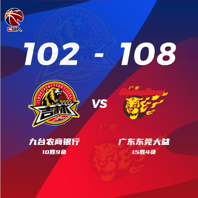优直播12月28日讯 CBA常规赛第二阶段继续进行,吉林对阵广东,吉林最近2连胜,10胜8负暂列积分榜第9,而广东则是状态爆棚豪取9连胜,14胜4负排在第4位。双方上来手感都一般,但很快调整外线手感接连打起对飚,广东队全民皆兵还是稍稍占据领先,随后吉林队“二姜”找回手感,姜宇星次节单节砍下12分,加上姜伟泽的外线三分,吉林很快占据双位数领先,好在易建联接连两记三分止血。下半场,徐杰联手赵睿接连外线发炮并送出助攻,帮助广东打出17-5攻击波一举反超比分,末节布鲁克斯接连外线发炮直接拉开双位数分差,但吉林通过三分也能继续咬住,但赵睿挺身而出,得分加助攻帮助广东重新拉开分差,最终广东108-102力克吉林,豪取10连胜。