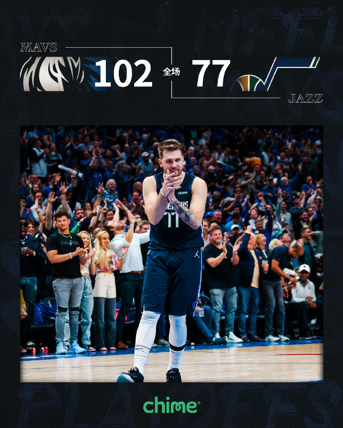 独行侠(3-2):东契奇33分13板5助,布伦森24分5板4助,布洛克9分7板3断,史密斯13分5板4助,鲍威尔8分4板,丁威迪9分4板,伯克4分,克里斯2分2板