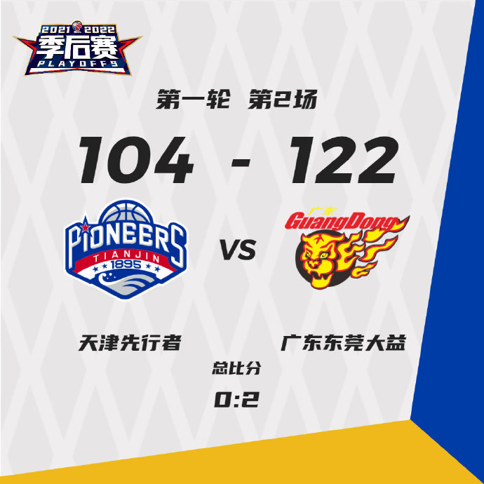 天津(0-2):伯顿25分4篮板5助攻,田雨18分7篮板,林庭谦20分5篮板2助攻,金鑫15分5篮板2抢断,罗切斯特10分9助攻3抢断,孟子凯8分6篮板2助攻。