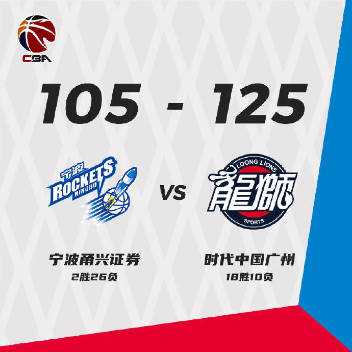 宁波(2-26):张彪27分3篮板2助攻,特罗特22分8篮板,李柏润17分,弗拉迪米尔13分11篮板,马振翔7分。