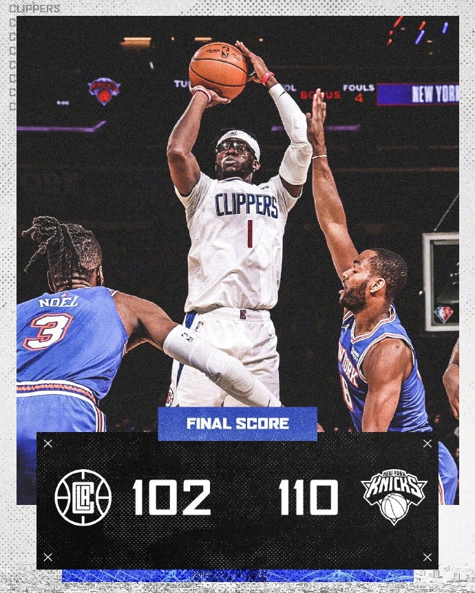 优直播1月24日讯 NBA常规赛继续进行,尼克斯主场迎战快船,尼克斯本赛季状态堪忧,目前又是3连败目前排名东部第11位,而快船虽然缺少两大主力,但依然排在西部第8位,本场比赛沃克因伤缺席。开局尼克斯上来就手感火热接连在外线发炮建立领先,而快船则是从内线打起追分,后半节双方相继在外线下起三分雨,尼克斯更胜一筹领先了8分,次节双方手感都有回落,尼克斯先打出小高潮领先到双位数,而雷吉也找到手感带领快船连续打出两波进攻高潮追近至5分分差。第三节,双方命中率还是不高,快船更是上来就陷入得分荒,尼克斯抓住机会重新领先到双位数,雷吉和兰德尔也展开对攻,尼克斯凭借外线三分稳住双位数领先优势,末节雷吉带领快船多次试图掀起反攻,但尼克斯今天火热的外线手感始终能给出回应,分差也一直保持在10分左右,最终尼克斯主场力克快船,终止自己的3连败。