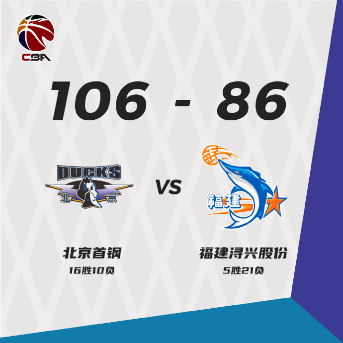 优直播 1月23日讯 CBA常规赛继续进行,上场大胜四川的北京迎战福建,后者上场力克青岛,此役陈林坚轮休缺阵,比赛开打后福建打出13-4攻击波一度占优,吉布森及时发力率队回应,首节结束时双方战成28平,次节回来,福建进攻突然断电仅靠高登一人苦苦支撑,范子铭予取予求单节独得12分,北京连续打出得分高潮扩大优势,半场战罢,北京已经领先23分。易边再战后高登崴脚离场,雪上加霜的福建进攻端越发低迷,林书豪和范子铭连进中投,三节结束后北京已经领先30分,末节上来,双方陆续换上替补阵容,福建进攻回暖但无奈分差过大,比赛提前失去悬念,最终北京106-86轻取福建迎来两连胜。