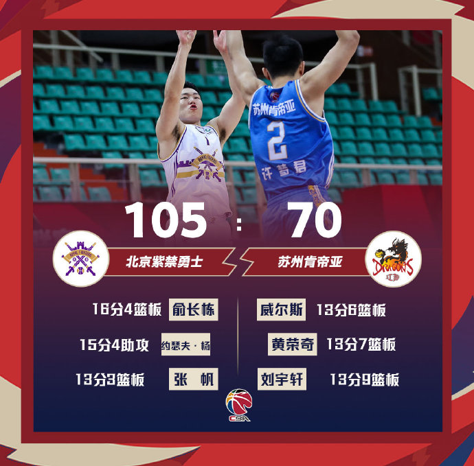 江苏(8-44):刘宇轩13分9篮板,蒋浩然10分3篮板,张稀然11分4助攻,威尔斯13分6篮板4助攻9失误,孙鑫4分,黄荣奇13分7篮板3助攻,许梦君2分。