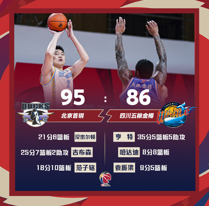 北京(27-23):汉密尔顿21分6篮板,范子铭18分10篮板,吉布森25分7篮板2助攻,刘晓宇7分2篮板6助攻2抢断,方硕6分6助攻,雷蒙10分2篮板3助攻,常林4分4篮板,加尼尤2分2抢断,张才仁2分3篮板