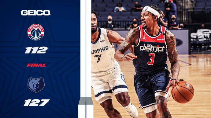 奇才(14-21):威斯布鲁克20分5板10助,比尔21分3板5助,八村塁11分6板,阿夫迪亚13分6板,贝尔坦斯13分2板,加里森-马修斯9分2板,瓦格纳6分4板,内托7分2助,小洛7分6板,布朗5分2板。
