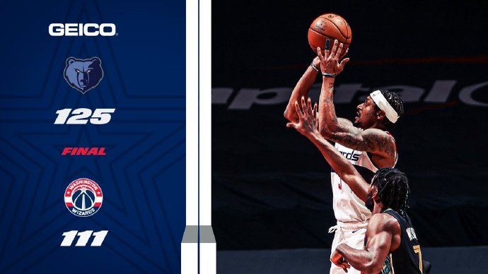 奇才:马修斯5分,八村塁7分,瓦格纳7分2板,比尔23分6板5助,威少23分6板15助3断,贝尔坦斯11分5板,阿夫迪亚10分7板,小洛14分,内托7分4助,莱恩4分7板