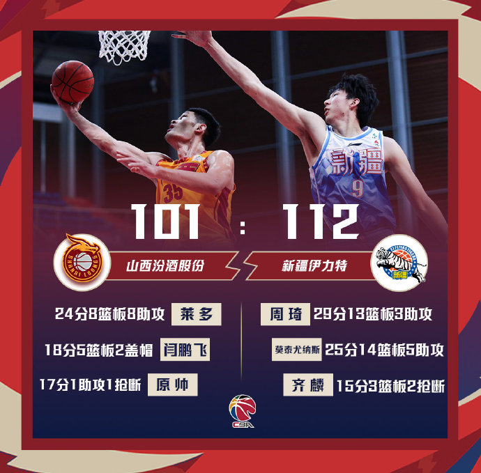 优直播2月1日讯 CBA常规赛山西主场对阵新疆,山西最近状态低迷遭遇6连败。开场后不久新疆就打出一波11-0取得领先。第二节两队进攻状态都不错,莱多接连砍分帮助山西追上比分,不过新疆依靠周琦和莫泰两人在内线的发挥保持略微领先,上半场新疆51-50领先1分。下半场新疆再次巩固领先优势,不过山西仍旧紧追不舍,但新疆始终守住领先优势,最终新疆112-101送给山西7连败。