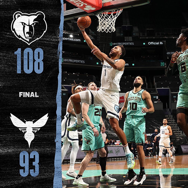 优直播1月2日讯 黄蜂今日坐镇主场迎来和灰熊的常规赛较量,灰熊因伤或新冠原因有8名球员无法上场比赛。首节比赛灰熊在拉锯战中抓住了黄蜂短暂哑火机会并送出11-0的攻势确立起领先,不过面对一直顽强追分的黄蜂,灰熊也难以继续扩大领先,凭借着对攻中的稳定输出,灰熊守住6分领先结束上半场。第三节开局灰熊冲击内线送出10-0的攻势一举确立起两位数的领先,而这波进攻也直接决定了最终的胜负,灰熊自此牢牢守住两位数领先,末节黄蜂短暂挣扎但无奈对手稳定发挥。最终,灰熊客场轻取黄蜂拿下比赛。