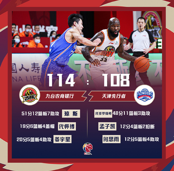 吉林(15-10):琼斯51分12篮板7助、姜宇星20分5板4助、代怀博19分6板、张彪8分。