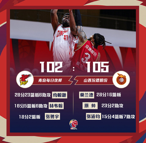 优直播1月1日讯 CBA常规赛,青岛今日迎战山西,前者遭遇两连败暂列积分榜第六位,而后者上场比赛则是输给了辽宁排名联赛第十位,本场亚当斯和富兰克林均缺战。比赛上来两队都进入状态较慢,频频打铁失误,在经过调整后青岛开始发力,一波攻势取得领先,次节双方依旧没能解决好进攻端的问题,半场结束时山西将分差缩小到4分。易边再战,山西继续反扑成功实现反超,末节更是将分差拉大到两位数,青岛此后再度迫近比分,张涵钧绝杀球被封盖,比赛进入加时,加时赛场上依旧保持拉锯,关键时刻葛昭宝两罚全中,张骋宇绝平球不中,最终山西加时险胜青岛,送给后者三连败。