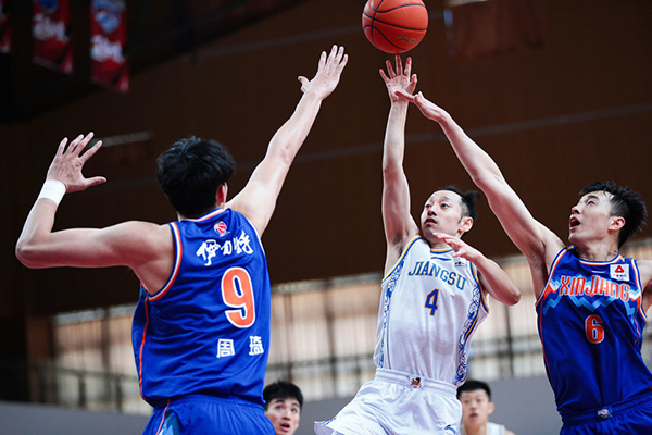 易边再战,周琦篮下将球打进,个人连拿四分,曾令旭反击一条龙得手,孙鑫假摔被吹技术犯规,新疆一波10-0的小高潮取得领先,暂停调整过后王洪和吴羽佳连中两记三分止血,周琦利用篮下的身高优势连续补篮终于将球打进,随后又在弧顶命中远投,齐麟投进翻身中距离后场上分差达到两位数,刘力鹏外线手感火热连中三记三分,吴冠希篮下擦板命中,史鸿飞突破压哨造成犯规。三节结束,新疆86-72领先江苏。