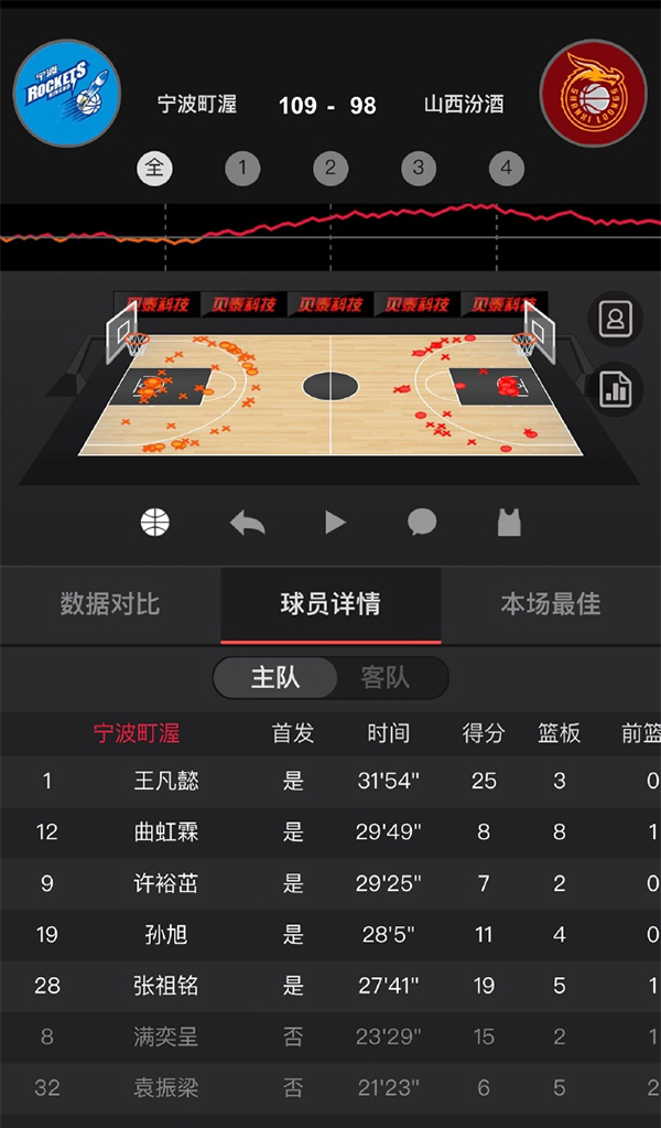 宁波:王凡懿25分、张祖铭19分5篮板、满奕呈15分、孙旭11分4篮板、曲虹霖8分8篮板、许裕茁7分、马鑫鑫7分