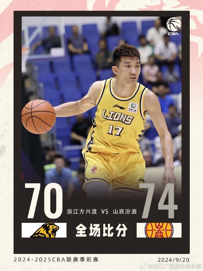 优直播讯 9月20日讯 CBA季前赛广厦对阵山西,本场比赛胡金秋缺阵。开场两队经过短暂的僵持后浙江进攻陷入低潮,山西在古德温的带领下多点开花建立领先。第二节广厦手感有所回暖,两队陷入拉锯战。下半场回来孙铭徽找到状态带领广厦追分,张宁联手双外援总能及时回应,广厦始终无法追上比分,最终山西74-70力克广厦。