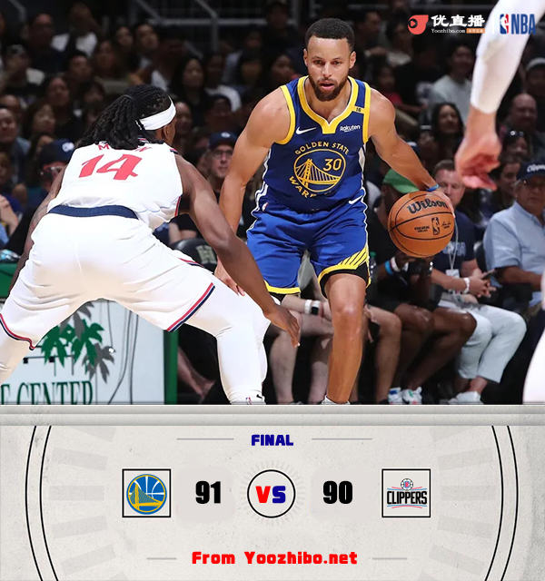 优直播10月6日讯 NBA季前赛,勇士对阵快船,库里和哈登均先发出战。开场后哈登和祖巴茨多次形成连线帮助快船取得领先,随后勇士依靠提速反击回敬一波9-0攻势,哈登连续制造三分犯规和打进3+1帮助快船再度领先,勇士依旧靠着反击将比分咬住。第二节快船依旧失误较多,勇士趁机反超比分,哈登站出来连续制造罚球为快船稳住阵脚,穆迪两记三分帮勇士领先结束上半场。下半场回来两队替补阵容都打得比较乱,失误频频,此后双方打得相当胶着,最后时刻沃特斯完美执行战术完成三分压哨绝杀,勇士91-90险胜快船。