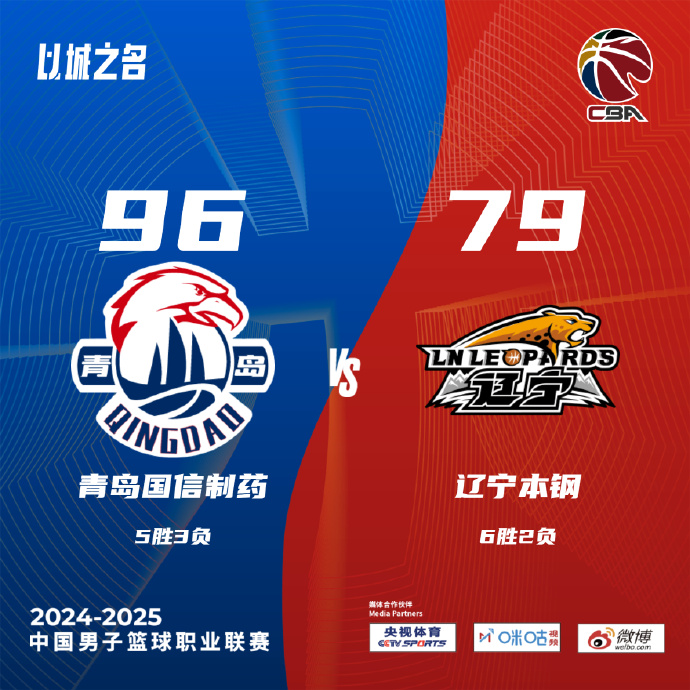 优直播10月28日讯 CBA常规赛,青岛主场迎战辽宁,本场比赛赵继伟因伤缺阵。比赛开始,双方开局都比较慢热,辽宁打了半节得分没上双,青岛外线多点开局建立双位数领先,辽宁始终没有进攻端手感,首节青岛领先15分,次节辽宁上来打出11-0直接追上比分,双方展开拉锯战,韦瑟斯庞里突外投稳住局势,弗格有投有传继续追分,半场辽宁追到差4分。下半场,米切尔连砍6分,青岛重新拉开比分,又是弗格站出来止血,辽宁一度追到差2分,末节辽宁继续追分,王睿泽接连三分命中,韦瑟斯庞里突外投连砍6分稳住局势,青岛始终保持两球以上领先,最终青岛96-79力克辽宁。