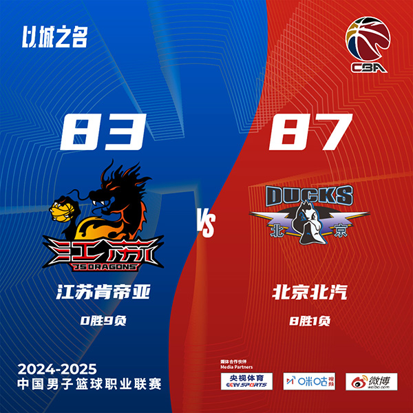 优直播11月1日讯 CBA常规赛继续开打,北京和江苏迎来一场交手。北京新赛季状态非常出色,开季8场比赛仅仅输给了吉林;江苏则难尝一胜,他们开季8连败是联盟唯一一支还没有取得胜利的球队。首节之争双方状态相当一路小比分僵持,这一节最大分差不过3分;次节北京外线依旧无法找到感觉导致局面急转直下,整个上半场北京三分球15投仅2中;江苏则在史密斯的带领下送出15-6的攻势逐渐占据上方,不过北京也在随后连续冲击篮下抢分蚕食至2分进入下半场。休息归来双方继续持续拉锯,北京打得稍显被动大部分时间扮演追分角色;末节北京短暂反超但无法占据上方,悬念也一直维持到最后。决战时刻北京还是脱颖而出并以一波6-0拉开比分奠定胜局。最终,北京力克江苏,并送后者开季9连败。