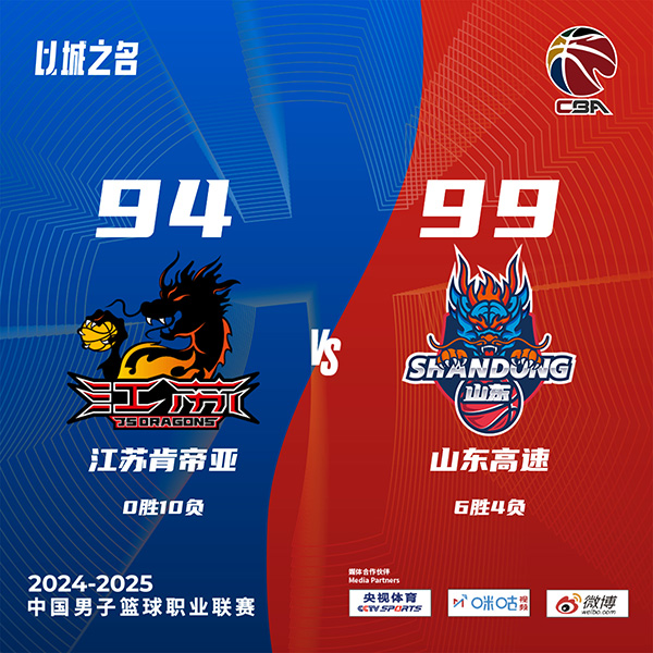 优直播11月3日讯 CBA常规赛首阶段收官战,江苏主场迎战山东,开赛至今江苏苦吞9连败,是目前联盟唯一不胜球队,山东上场力克北控,目前5胜4负排在联赛第10位。此役开打后双方陷入缠斗,山东双外援克里斯和盖利联手取分,蒋浩然连投带罚强势回应,末段江苏开始发力后来居上,首节结束时江苏领先2分,次节回来,双方进攻均陷入停滞,两队单节得分均未超过20分,蒋浩然联手崔晓龙率队保持优势,半场战罢,江苏依然领先1分。易边再战后江苏外援特奎维恩-史密斯突然爆发,单节飚中4记三分狂砍21分,末段场上形势风云突变,山东回敬11-2攻击波夺回优势,三节结束后山东反超1分,末节决战,两队你来我往交替领先,决胜时刻高诗岩造杀伤罚球拿到本场首分,江苏追分未果,陈培东联手盖利终结悬念,最终山东99-94击败江苏送对手开局10连败。