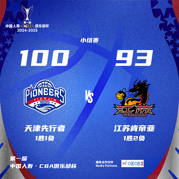 优直播11月15日讯 CBA俱乐部杯定州赛区,天津对阵江苏。上半场,天津双外援率先发力帮助球队取得领先,江苏内外开花奋力反击,古德温得分助攻一肩挑带队反超,拉维特挺身而出连续拿分稳住局势,大卫-詹姆斯也延续火力,半场战罢天津55-49领先江苏。下半场,天津率先发力,多点开花将分差拉开到20分以上,江苏奋力反击回敬13-0的攻击波,末节双方陷入缠斗,江苏多次迫近比分,天津及时回暖锁定胜局。最终,天津100-93击败江苏。