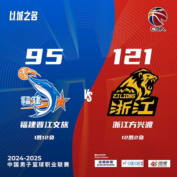 优直播讯北京时间12月6日讯 CBA常规赛,福建对阵广厦。广厦11胜2负高居联赛第二,福建1胜11负排倒数第二。比赛开始,双方开场势均力敌,比分始终紧咬,广厦内外开花取得领先,次节广厦持续发力将分差拉开到两位数,福建不断冲击内线努力追赶,赵岩昊连中三分,半场战罢广厦62-48领先福建。易边再战,福建大举反击,斯蒂尔内外开花高效拿分,福建一度将分差缩小到只剩5分,末节福建突然哑火,孙铭徽和胡金秋联手带队重获20分优势,福建大势已去。最终,广厦121-95轻取福建。