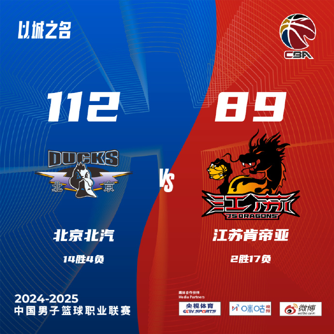 优直播12月18日讯 CBA常规赛继续进行,北京主场迎战江苏,周琦此役感冒严重缺席,北京上场大胜天津终结三连败,目前13胜4负位列联赛第6,江苏遭遇连败,2胜16负排在联赛倒数第二。首节开打后主场作战的北京早早发力,雷蒙、丘天和所罗门轮番取分,率队打出11-2开局,江苏三外援联手取分稳住局势,但曾凡博连投带罚强势回应,首节结束时北京领先6分,次节回来,江苏进攻彻底断电单节仅得到11分,北京火力不减连续轰出得分高潮,半场战罢,北京确立28分优势。易边再战后北京进攻火力放缓,刘泽希手感滚烫连中三分,但北京及时回暖牢牢占优,三节结束后北京依然领先29分,末节上来,两队陆续换上替补阵容,北京始终保持大比分优势,最终北京112-89大胜江苏送对手三连败。