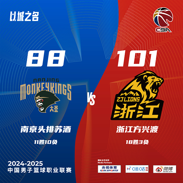 广厦(18-3):孙铭徽15分9助、胡金秋12分9板、布朗27分7板4助、奈特31分22板、赵嘉仁13分4板。