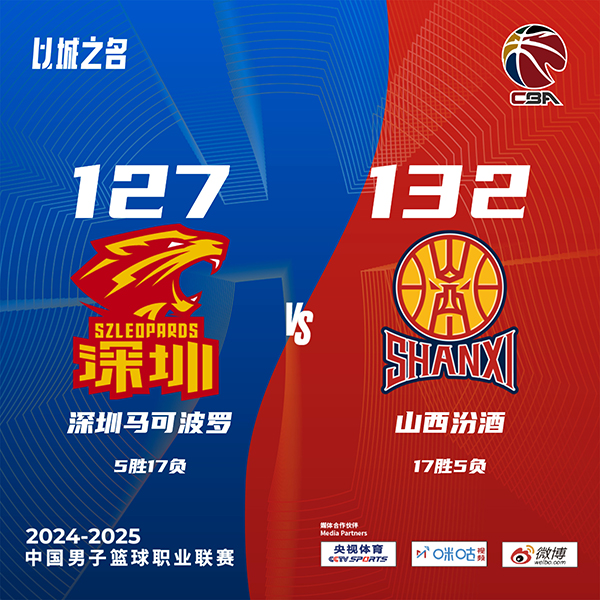 优直播讯北京时间12月24日讯 CBA常规赛,深圳主场迎战山西,深圳目前5胜16负排在第18位,山西则是16胜5负高居积分榜次席,本场比赛,山西外援古德温被禁赛。比赛开始,双方上来都迅速进入状态,并展开对攻战,随后威姆斯有攻有传,联手汤普森助队一度领先到双位数,但山西节末发力追到差3分,次节周鹏发力,单节连中3记三分带队重新拉开比分,但张宁站出来外线强势回应3记三分止血,原帅半场结束之前的三分再进直接反超2分。下半场,迪亚洛接连单打帮助山西拉开比分,但周鹏还能扔进三分,随后周鹏三分被莱蒙垫脚受伤下场,但约翰逊接连中远投轰出9-0反超6分,末节双方继续拉锯战,周鹏重新披挂上阵,山西很快犯满,深圳保持领先,迪亚洛违体犯规后深圳领先到8分,但深圳连续失误,张宁一攻一传拖入加时。加时赛,迪亚洛成为主攻点帮助球队反超3分,贾明儒也接连贡献得分,迪亚洛6犯毕业,周鹏关键绝平三分不中,最终山西加时132-127力克深圳。