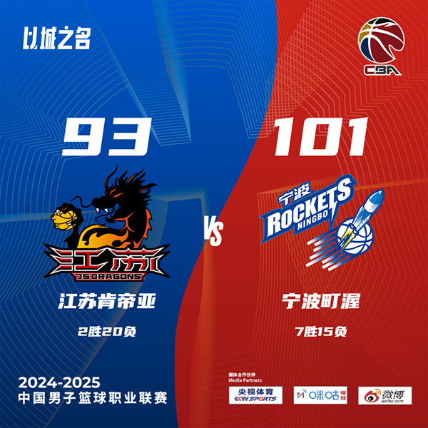 优直播讯北京时间12月25日讯 CBA第二阶段赛事继续开打,宁波和江苏今日迎来一场对决,目前宁波遭遇6连败,江苏则遭遇5连败。首节之争双方状态相当,这一节双方最大分差不过4分且拉回拉锯僵持,次节场面依旧,打了半节时间双方也还是平手状态,不过江苏的被动来自于他们罚球线上,整个上半场他们罚丢了10个罚球,不过后半段江苏进攻端表现更加出彩以一波9-0的攻势占据上方并奠定半场6分领先。休息归来江苏一度拉开两位数领先但无法控制领先,宁波不断制造杀伤罚球紧追比分;末节宁波虽然一直被动追分但最后时刻看到曙光,罗凯文两记三分帮助宁波实现反超,江苏读秒阶段又出现致命失误并让马奇轻松拿分。最终,宁波逆转江苏结束6连败,江苏的连败则拉大至6场。