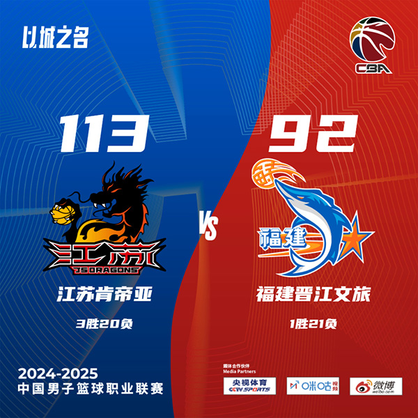 优直播讯北京时间12月27日讯 CBA常规赛副班长之争,江苏今日迎战福建,前者近来遭遇六连败,赛季至今只赢下两场比赛,后者则是13连败,赛季至今只拿到一场胜利。比赛上来,两队就打得十分胶着,场上比分交替领先,不过福建早早犯满让他们一度处于劣势,好在是咬住了比分,首节战罢双方战至26-26平,次节福建还是败下阵来,他们的进攻问题很大,单节得分未能上20分,江苏这边古德温状态神勇,在他的带领下江苏半场领先10分;下半场回来,福建打出一波12-2的攻势迅速抹平分差,紧要关头又是古德温站出来连续得分,江苏回应9-0的小高潮,分差在末节已经突破了二十分,比赛彻底失去悬念,最终江苏大胜福建,结束六连败的同时也送给后者14连败。