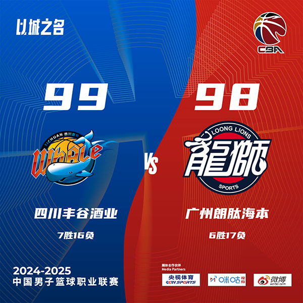 优直播讯北京时间12月28日讯 CBA常规赛继续进行,四川主场迎战广州,两队战绩同为6胜16负,广州近期苦吞6连败,四川上场不敌广厦。首节开打后双方互相试探,广州率先进入状态一度占优,但萨姆纳早早发力连续取分,四川回敬14-2攻击波后来居上,首节结束时四川领先7分,次节回来,萨姆纳不断杀伤罚球涨分,无奈其他队友状态低迷,广州抓住机会不断缩小分差,半场战罢,四川优势仅剩2分。易边再战后两队陷入鏖战,萨姆纳无人可挡单节狂揽22分,沃伦联手道格拉斯及时回应,三节结束后四川依然领先4分,末节决战,双方交替领先鏖战至最后时刻,王云章抢断反击打进,沃伦出现致命失误,亨特两罚不中但焦泊乔仓促绝杀未果,最终四川99-98险胜广州送对手7连败。