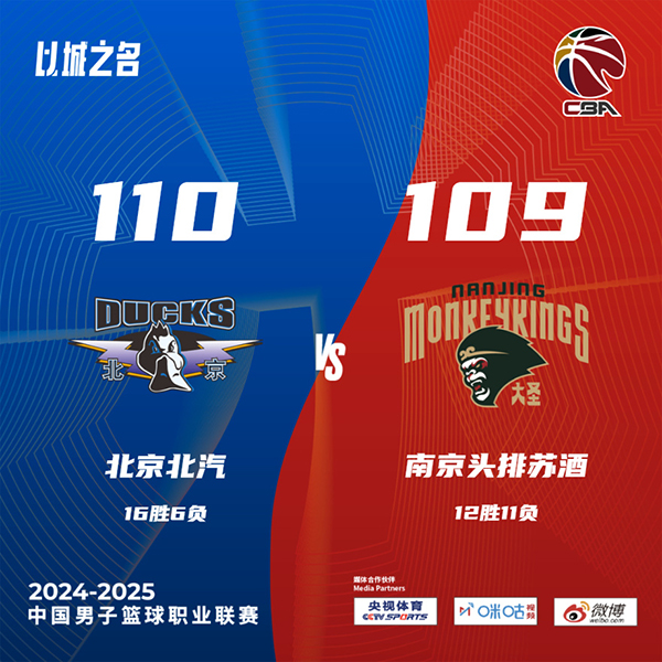 优直播讯北京时间12月28日CBA常规赛,半场北京56-51同曦,林葳在最后时刻干拔三分未中,祝铭震抢到篮板球后抛投,可惜球弹出篮筐,南京错失绝杀机会。最终北京110-109同曦。北京北汽陈盈骏17分9助,理查德-所罗门17分1助;南京头排苏酒林葳32分7助,赵柏清17分1助。