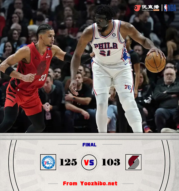 76人(13-17):恩比德37分9篮板、马克西23分3助攻、乌布雷15分5篮板8抢断、乔治9分6篮板4助攻、马丁7分、亚布塞莱16分4篮板、康西尔7分。