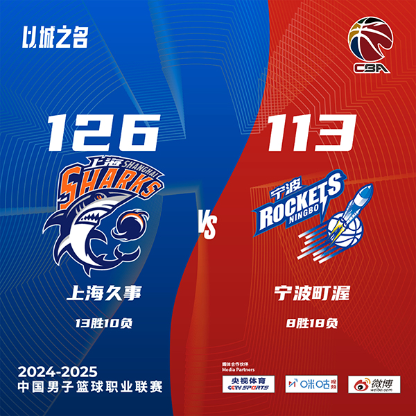 优直播讯北京时间1月4日讯 CBA常规赛,上海主场迎战宁波,上海目前11连胜,12胜10负升至积分榜第13位,宁波则是8胜17负排在第15位。比赛开始,双方迅速进入状态,王哲林接连内线强打得分上双,而宁波则是靠外援撑起球队进攻,还命中很多高难度进球,首节上海领先4分,次节上海7-0后一度领先到双位数,随后宁波持续发力回应14-3攻击波反超比分,随后上海再回应11-2小高潮半场领先6分。下半场,双方展开拉锯战,李弘权里突外投连砍8分,上海顺势打出16-1超级攻击波拉开双位数领先,宁波接连三分止血追分,三节上海领先2分,末节李弘权又是接连三分,上海一波12-2重新拉开双位数领先,随后上海牢牢掌握住双位数领先,最终上海126-113力克宁波,豪取12连胜。