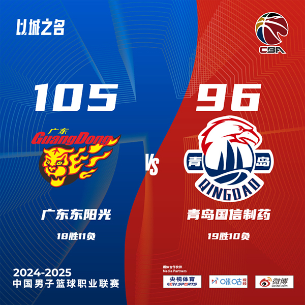 优直播讯 北京时间1月10日讯 CBA常规赛,广东主场迎战青岛,两队最近状态都不错,都经历4连胜,广东17胜11负排在第9位,青岛则是19胜9负排在第7位。比赛开始,吉伦沃特和徐杰接连三分为广东开局,而青岛则是靠外援韦瑟斯庞和米奇撑起进攻端,他俩带队一波9-0首节领先4分,次节广东接连失误,韦瑟斯庞状态出色里突外投连砍8分带队领先到双位数,随后吉伦沃特里突外投苦苦支撑,杨瀚森接连内线强打,青岛半场依旧领先9分。下半场,双方展开拉锯战,吉伦沃特继续撑起球队进攻,青岛外援联手回应,徐昕攻防两端建功助广东三节反超2分,末节徐昕接连送大帽,广东打出10-0拉开比分,打了4分多钟段昂君接连三分终于止血,但广东始终保持住10分左右领先,最终广东105-96逆转青岛,拿到5连胜。