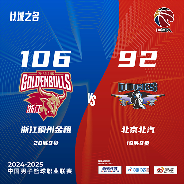 优直播讯北京时间1月11日讯 CBA常规赛继续强强对话,浙江主场迎战北京,浙江上场大胜宁波,目前19胜9负暂列联赛第7位,北京不敌广厦后战绩更新为19胜8负,排在联赛第9位。此役周琦因发烧缺阵,曾凡博继续休战。首节开打后北京开局状态慢热,浙江双外援琼斯和约克轮番取分,杰曼联手所罗门苦苦支撑,但末段浙江开始发力拉开比分,首节结束时浙江领先9分,次节回来,两队外线手感冰凉,中段北京找到节奏回敬10-0小高潮一度追平,但浙江内外结合及时回应,半场战罢,浙江依然领先5分。易边再战后北京进攻再度陷入停滞,浙江延续火力不断打出小高潮,三节结束后浙江将优势扩大到13分,末节上来,北京率先换上替补阵容,浙江稳扎稳打牢牢占优,北京无法打出追分高潮翻盘无望,最终浙江卡位战106-92力克对手。