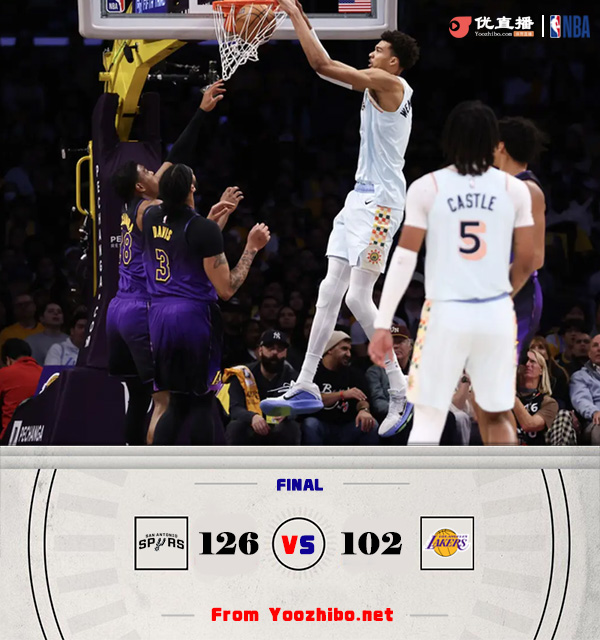 优直播讯北京时间1月14日讯 NBA今日继续开打,湖人今日坐镇主场迎战马刺。湖人此前因为洛杉矶大火的原因两个主场延期首节之争马刺开局2分半里一分未得导致被动开局,湖人则在里夫斯的连续拿分中取得7-0的开局;不过随着比赛深入马刺渐入佳境,文班亚马和瓦塞尔联手抢分帮助马刺后来居上反超比分;次节双方对攻大半节的时间,不过湖人更胜一筹在末段送出8-0的攻势拉开两位数分差并奠定半场9分领先。休息归来马刺迅速做出回应,凯尔登第三节的压哨三分让双方重新回到同一起跑线;末节决胜马刺彻底接管比赛,马刺在文班亚马并没有太大发挥的情况下仍然轰出20-7的攻势直接拉开两位数分差奠定胜局。最终,马刺客场掀翻湖人,并送湖人3连败。