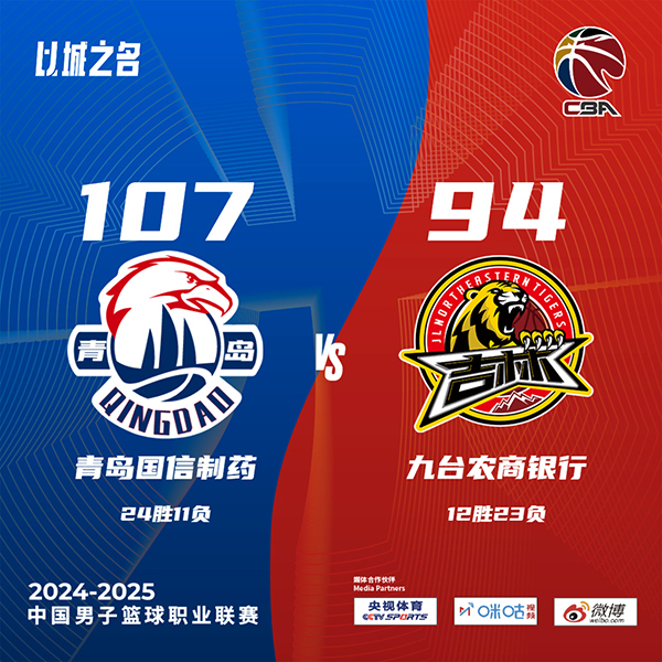 优直播讯 北京时间1月25日讯 CBA常规赛,青岛今日迎战吉林,前者上场比赛战胜四川,后者则是输给新疆。比赛上来,两队的进攻表现都不太好,半节时间得分均未上双,不过青岛随后在两分钟的时间里轰出一波11-0的小高潮拉开分差,首节末段到次节初,吉林连拿七分又追了回来,但随后他们就陷入到得分荒,青岛再打11-0建立起两位数的领先优势,半场结束时吉林落后13分;下半场回来,两队展开对攻,分差并没有发生太大变化,青岛始终握有十分以上的领先,末节吉林也没有再获得任何机会,最终青岛轻取吉林迎来连胜。