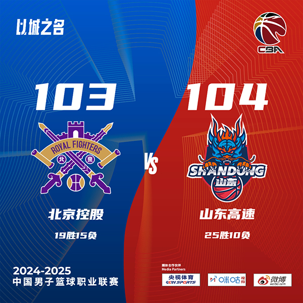 优直播讯 北京时间1月25日讯 CBA常规赛,北控对阵山东,北控最近状态不错取得4连胜,山东也是拿到2连胜。开场后山东打得更有活力,通过反击和二次进攻取得领先,北控靠着里勒和邹雨宸的内线优势追上比分,山东靠着第一节结束前连续的罚球领先1分结束第一节。第二节上来萨林杰和特莱斯开启得分模式帮助北控迅速将领先优势扩大到两位数,虽然山东逐渐找回节奏,但北控进攻打得顺风顺水单节轰下40分。下半场回来,邹雨宸依旧状态火热,他在内线频频暴扣,不过高诗岩手感火热不断砍分,山东紧追不舍,三节结束前库马杰接连篮下得手帮助山东进一步缩小分差。末节回来两队对抗激烈犯规不断,刘晓宇被吹违体犯规,山东抹平分差,随后两队陷入僵持,场上比分交替上升,关键时刻高诗岩两记三分完成反超,北控最后没能把握住绝杀机会,最终山东104-103逆转北控取得3连胜,北控4连胜被终结。