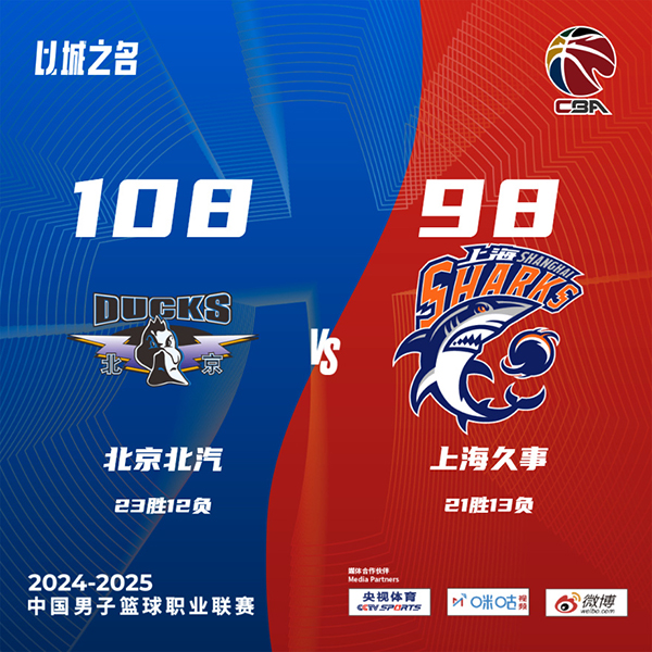 优直播讯北京时间2月27日,CBA常规赛北京北汽主场迎战上海久事,本场上海背靠背作战,王哲林缺阵。首节双方紧咬比分,第二节后半段北京一波高潮拉开分差,半场北京61-52上海,第三节北京一度领先14分,随后上海李弘权、布雷德索联手追至2分分差,末节后半段北京再度打出反击高潮收下比赛,最终北京108-98上海。