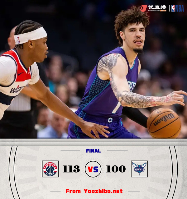 优直播讯3月2日讯 NBA常规赛,黄蜂主场迎战奇才。黄蜂5连败,以14胜44负排东部倒数第二,奇才10胜48负紧随其后。上半场,双方开场势均力敌,比分始终紧咬,布里奇斯高效发挥,奇才多点开花给出回应,次节两队大打对攻,奇才多点开花占据主动,黄蜂不断冲击篮筐连投带罚迅速回应,半场战罢黄蜂59-54领先奇才。下半场,黄蜂命中率骤降,奇才持续发力一举反超比分并获得两位数优势,末节斯玛特里突外投连续拿分带队扩大领先,黄蜂苦苦追赶无果。最终,奇才客场113-100击败黄蜂,赛季4杀对手完成横扫。