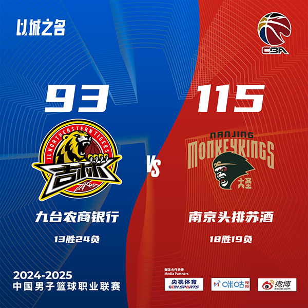 优直播讯北京时间3月7日讯 CBA常规赛,吉林对阵同曦,上场比赛吉林击败四川结束2连败,同曦则是最近遭遇2连败,本场比赛林葳缺阵。开场后两队你来我往多次打成平手,第一节尾声毕格柏和栾利程联手帮助吉林取得微弱优势。第二节哈里斯上来接连砍分帮助同曦反超比分,郭昊文也是频频拿分,不过吉林及时调整做出回应,两队陷入僵持,第二节尾声依旧是哈里斯和郭昊文联手拿分帮助同曦建立优势,琼斯及时站出来帮吉林将分差咬在个位数。易边再战,同曦上来先外线开火,吉林也及时回应,两队围绕十分拉锯。第三节后半段同曦掀起反扑将分差拉大到20分以上。最后一节琼斯虽然努力带领吉林追分,但同曦总能及时回应,分差始终在两位数,最终同曦115-93轻取吉林。