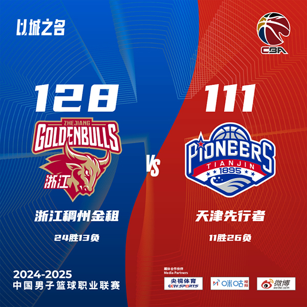 优直播讯北京时间3月8日讯 CBA常规赛,浙江主场迎战天津。浙江23胜13负排联赛第9,天津11胜25负排第15。比赛开始,双方开场大打对攻,大卫-詹姆斯高效发挥,吴前连中三分给出回应,次节浙江持续发力,达米安-琼斯内外开花带队将分差拉开到两位数,大卫-詹姆斯延续火力带队追赶,半场战罢浙江69-58领先天津。易边再战,浙江攻防两端压制天津,轰出15-2的攻击波将分差拉开到30分以上,末节天津发起反击稍稍缩小分差,无奈之前挖坑太大。最终,浙江128-111轻取天津,主场过关。