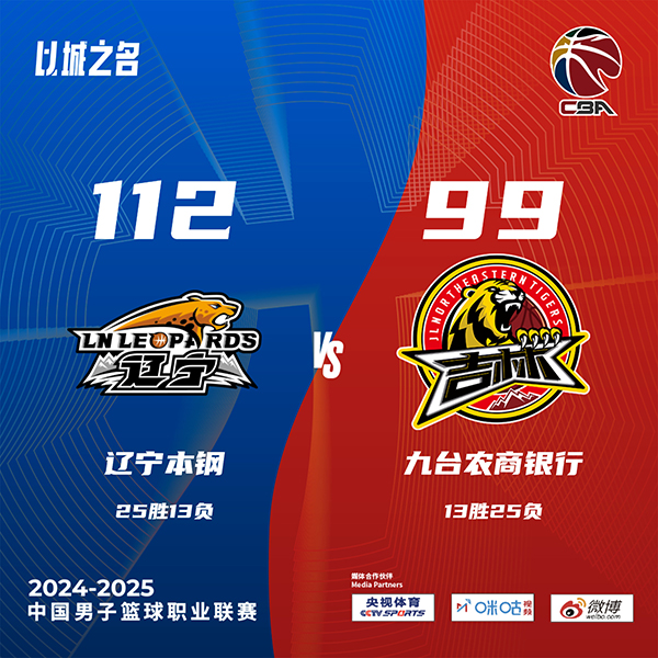 优直播讯北京时间3月9日讯 CBA常规赛迎来东北德比,辽宁主场迎战吉林,辽宁目前24胜13负位列联赛第8,吉林13胜24负排在第14位。首节开打后两队你来我往比分紧咬,琼斯连投带罚不断取分,赵继伟联手韦伯外线回应,中段辽宁开始发力,首节结束时辽宁领先4分,次节回来,辽宁进攻突然陷入停滞,琼斯无人可挡单节狂揽17分,半场战罢,吉林反超领先7分。易边再战后辽宁突然发力一波10-2夺回优势,双方陷入鏖战比分紧咬,辽宁领先4分进入末节,末节决战,吉林连中三分拉回悬念,威尔斯内外结合稳住局势,赵继伟再中三分杀死比赛,最终辽宁112-99力克对手。