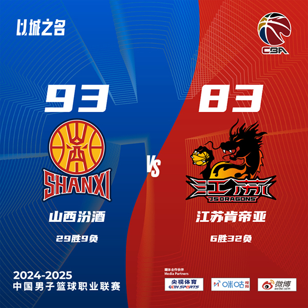 单节比分:18-24、20-26、32-16、23-17(山西在前)。
