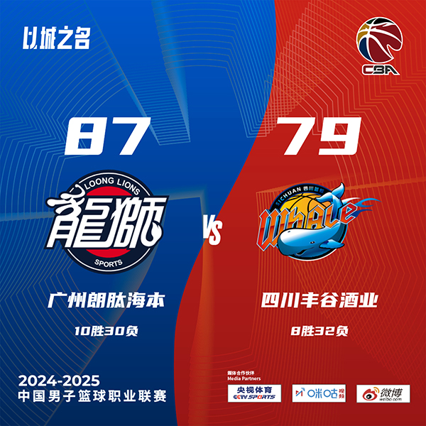 单节比分:21-22、16-19、24-16、26-22(广州在前)。