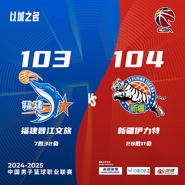 优直播讯北京时间3月14日中国男子篮球职业联赛 常规赛,福建晋江文旅对阵新疆伊力特。半场福建47-50新疆,最终福建103-104新疆。福建晋江文旅路易斯-金25分11板5助,约瑟夫-杨22分1板1助;新疆伊力特齐麟28分10板3助,赵睿20分4板4助。